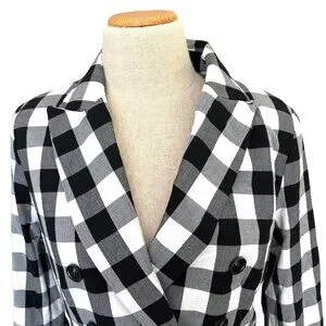 Rachel Zoe Blazer Women S Black White Buffalo Plaid Check Double Breasted Lined