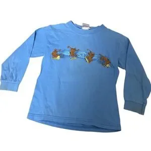 y2k 90's Vintage Scooby Doo Cartoon Network Blue Long Sleeve Graphic Tee Kids