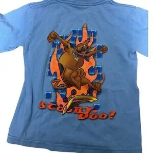 Keywords: Vintage, 90s, Y2K, Cartoon Network, Scooby Doo, Skater, Streetwear, Graphic Tee, Long Sleeve, Kids Fashion, Nostalgia, Retro, Hanna Barbera, Blue T-Shirt, Skateboarding
