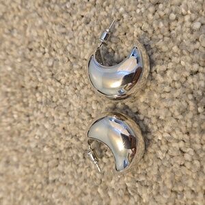 These elegant silver hoop earrings add a touch of sophistication to any outfit. Perfect for any occasion.