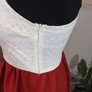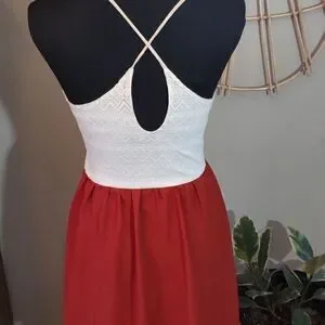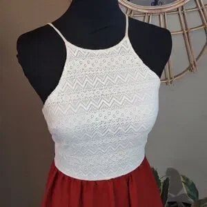 Tobi Burnt Orange with Creamy Lace Halter Top Mini Swing Dress Sz S