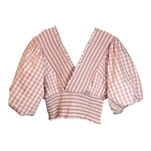 Abercrombie and Fitch pink gingham puff sleeve crop top.