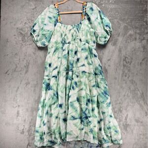 Johnny Was Workshop Size Large Jade Marble Tie-Die Midi Dress Embroidered