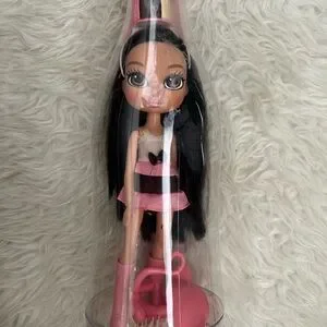 Chic doll featuring a pink and black dress. Perfect for collectors and play.