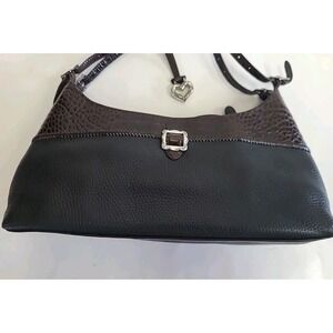 Brighton Croc Double Strap Leather Shoulder Bag Black Brown Western Hobo Purse
