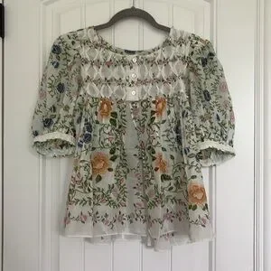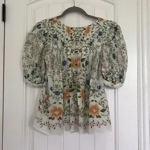 Farm Rio Folk Floral Short Sleeve Blouse NWT Small