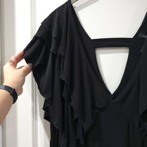 black maxi dress, v neck maxi dress, ruffle sleeve dress, flutter sleeve maxi, formal black dress, evening maxi dress, wedding guest dress, cocktail maxi, elegant long dress, flowy maxi dress, floor length dress, empire waist maxi, romantic maxi dress, date night dress, bridesmaid dress black, special occasion dress, modest evening dress, plus size maxi dress, curve maxi dress, feminine formal dress, minimalist black dress, vacation evening dress, resort dinner outfit, classic black maxi, soft drape dress, flattering v neckline, timeless evening gown, party maxi dress, lightweight formal dress