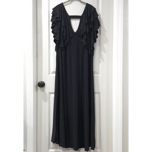 ASHLEY STEWART Elegant Black Cascading Ruffle Sleeve Maxi Dress, Plus Size, Nwt