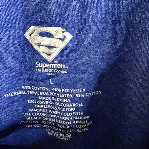 Blue shirt featuring iconic Superman logo in silver. Comfortable and stylish.