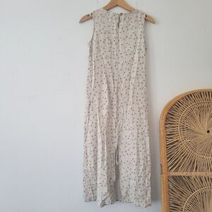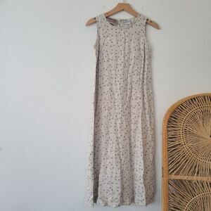 Vintage Studio Ease Linen Blend Dress Neutral Blue Floral Print Sleeveless 4P