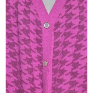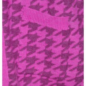 Cozy up in style with this oversized Buddy Love cardigan dress. Featuring a vibrant pink houndstooth pattern and MOP buttons, it's perfect for any casual outing. With pockets for convenience, this button-up sweater is a must-have for fashion-forward individuals.