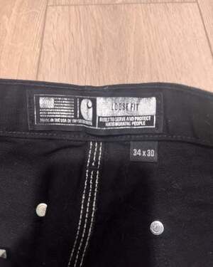 Carhartt B01 Loose Fit Firm Duck Double-Front Utility Work Pants in Black, Size 34x30. Made in the USA.