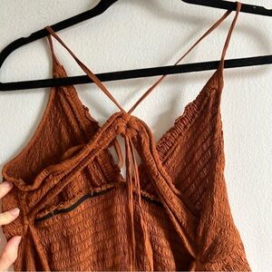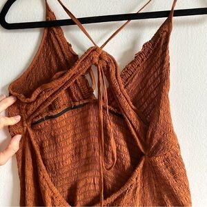The Anthropologie The Ellen Mini Ruched Dress features a flattering mini length, ruched detailing for a textured look, and a fitted silhouette that highlights the waist. Open back