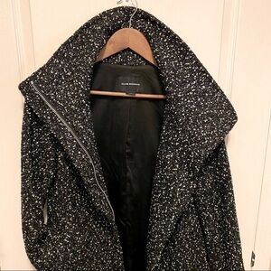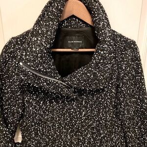 Club Monaco. Tweed Funnel Neck Wool blend coat. Black and white.