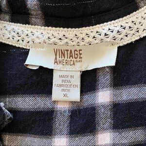Vintage America Plaid Shirt Embroidery Black Size XL
