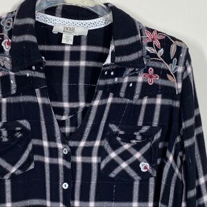 Embroidery shoulders plaid shirt