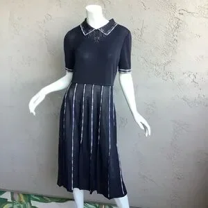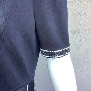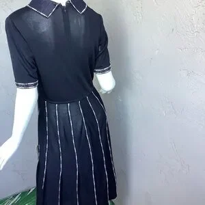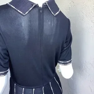 This elegant black dress features stylish white accents, perfect for any occasion. Its classic design offers a sophisticated look.