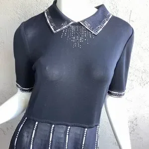 Escalier Sheer Black Sweater Dress with Beaded Accents