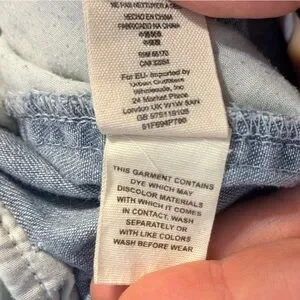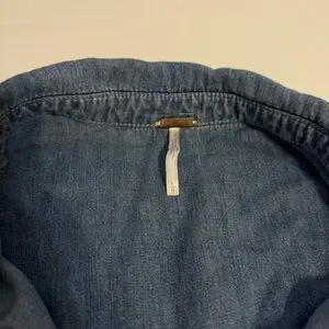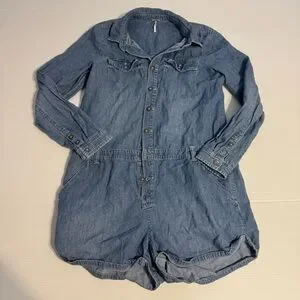 Free People Rivet Blue Denim Jean Chambray Long Sleeve Romper Large