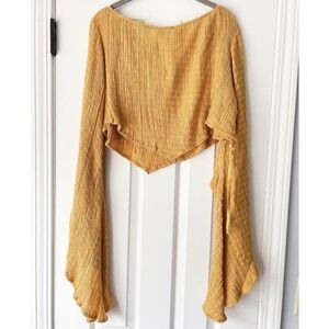 The Sol top by Savannah Morrow is designed with sunny days in mind. The peace silk and bamboo-blend fabrication lends it a breezy feel, while the wide neckline, bell sleeves and V-cut cropped hem make for a playfully feminine silhouette. Hard to find top. Excellent condition.