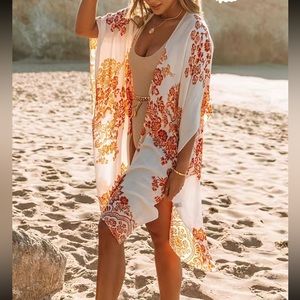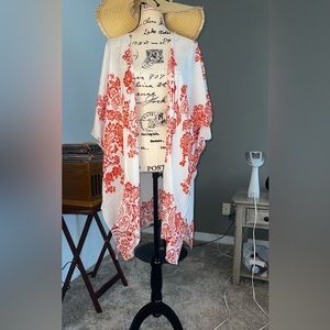 Elevate your style with this elegant white and red kimono cardigan. Perfect for any occasion, this accessory adds a touch of sophistication to your outfit.