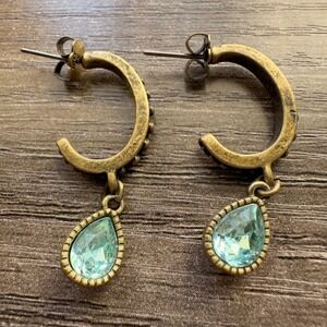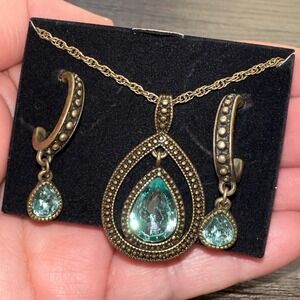 Avon Blissful Blues Drop Pendant Gift Set Vintage Style 2011 Art Deco Boho Antique Brass Elegant