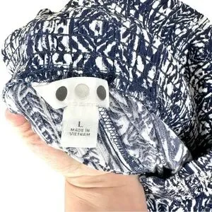 NWT- Three Dots- Navy/White Tribal Print Flowy Pull On Pants- Large
