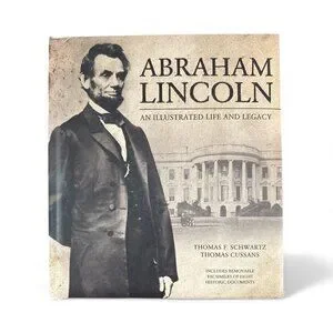 This hardcover book offers a detailed exploration of Abraham Lincoln's life, illustrated with images and facsimile historic documents for comprehensive insight.