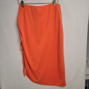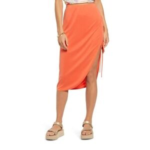 Open Edit Nordstrom Orange Red Mandarin Ruched Drawstring Skirt Med Adjustable