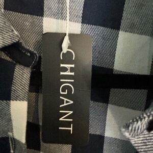 NWT Chigant Womens Navy White Buffalo Plaid Dress 3/4 Sleeve A-line sz Medium
