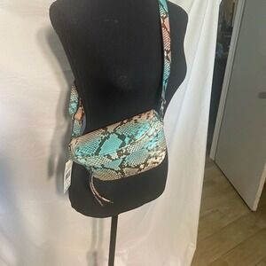 Michael Kors crossbody sling purse NWT Exotic Leather Ocean Blue Multi MSRP $328
