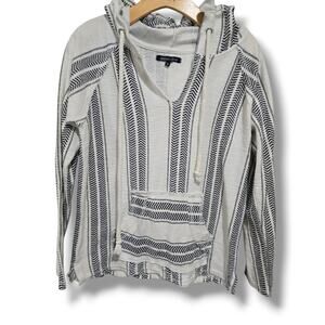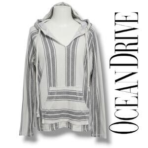 ocean drive, baja hoodie, striped pullover, womens small, cotton blend, surf style, beachwear, boho casual, lightweight hoodie, cozy top, festival fashion, travel outfit, laidback style