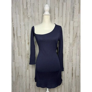 NWT Lulus Women's Navy Blue Asymmetrical Mini Dress Size Medium Long Sleeve