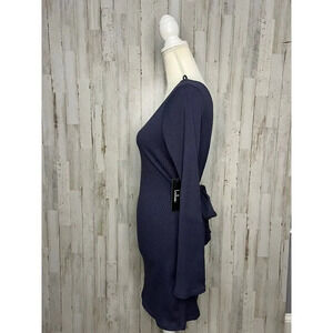 Keywords: Lulu's dress, asymmetrical mini dress, gray dress, women's fall fashion, ribbed knit dress, long sleeve dress, asymmetrical neckline, short dress, tie closure dress, USA made dress, new with tags, NWT dress, medium size dress, regular size dress, women's clothing