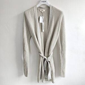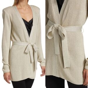 New L’AGENCE Rhea Tie Knit Long Line Metallic Gold Cardigan NWT Size Large