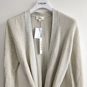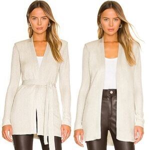 New With Tag L’AGENCE Rhea Tie Knit Long Line Metallic Gold Cardigan With Flaw: Minor Pull On Right Sleeve (see last photo and all photos).