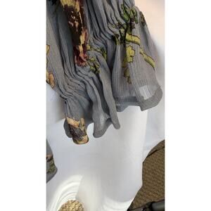 Paige Silk Floral Mini Dress Blue Long Sleeve Ruffle Sheer Button Front Lg