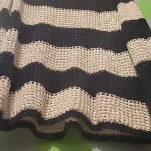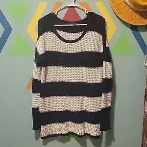 American Eagle Outfiters Women's Black And White Striped Open Knit Sweater Large
