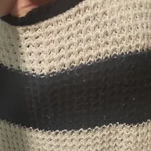 ●Black and white stripes across the sweater with the sleeves matching