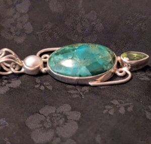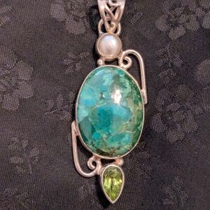 Artisan Handmade Solid Sterling Silver Pearl Genuine Chrysocolla Peridot Pendant