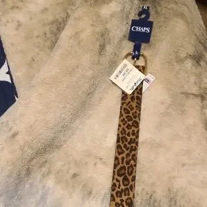 Chic leopard print belt by Chaps. Features a striking gold buckle. Ideal for a bold fashion statement.