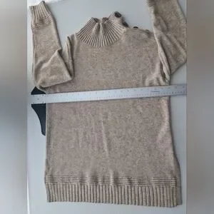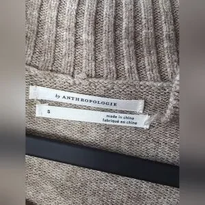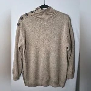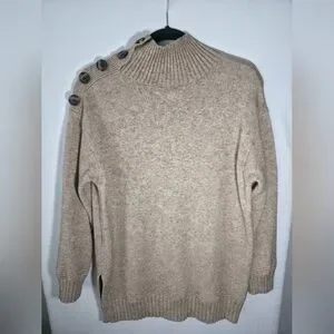 This Anthropologie "Margarita" tunic sweater is the ultimate cozy-chic staple. Featuring a sophisticated mock neckline and a unique decorative brown button detail along one shoulder, it offers a refined twist on a classic knit. The longline tunic silhouette and split side seams make it perfect for pairing with your favorite leggings or polished denim.