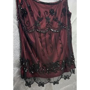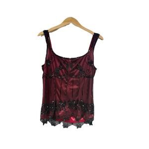 Vintage Y2K Marina Red Black Mesh Beaded Tank Top Vamp Whimsigoth Witchy Size M