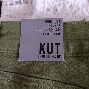 NWT KUT Sage High Waist Ankle Flare Frayed Hem Jean. Spring Green ready - featured in Anthropologie, Who What Wear, InStyle - as THE Green for Spring 2026. NOTE: See Color Palette Photo.