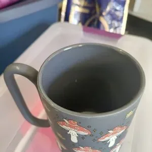 Enjoy your favorite beverage in this stylish gray mug featuring a whimsical mushroom pattern. Perfect for adding a touch of charm to your dining experience.