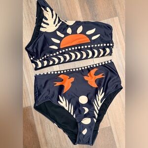NEW Commence Bird Print Asymmetrical Neck Bikini Set. Sz LARGE