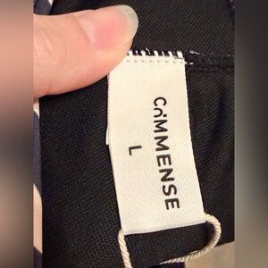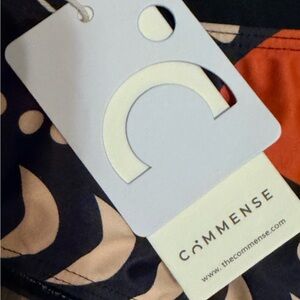 Chic bikini set with unique graphic design by Commense. Features bold black and orange colors. Ideal for beach outings. Sz large. New with tags