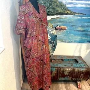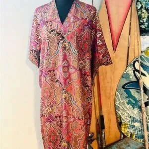 VTG Oscar de la Renta for Swirl Paisley Maxi Caftan Dress Made in USA, Excellent Condition Size 1X. Oscar de la Renta for Swirl