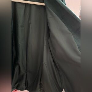 Elegant teal velvet blazer. Single-button closure. Perfect for formal occasions.