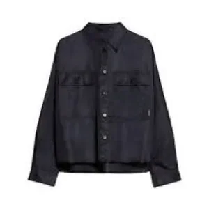 Stylish and versatile black jacket for any occasion. Perfect for layering and adding a touch of elegance to your outfit. Fabric is 100% Polyamide a water repellent technical twill. Features dropped shoulder long cuffed sleeves, a classic pointed collar and flap adorned patch breast pockets. It also features small side slit detail, in addition to a rounded front hem and a square rear hem. Visible button fastening on the front.. sold out online.